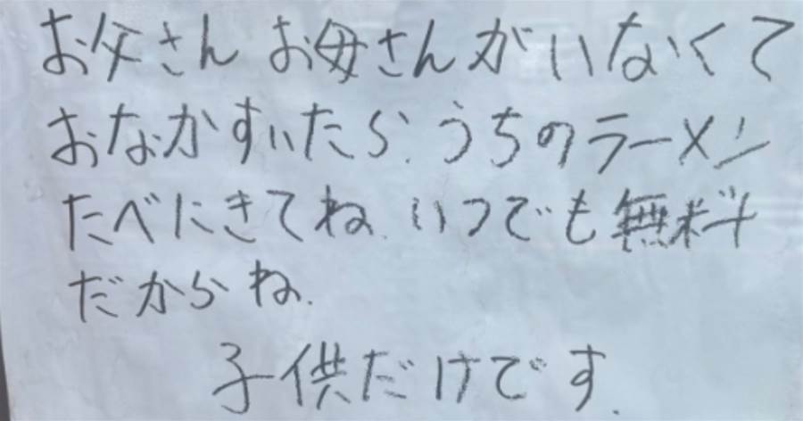「店の前に、“お腹がすいたら無料で食べに来ていい”って紙を貼ってる。」