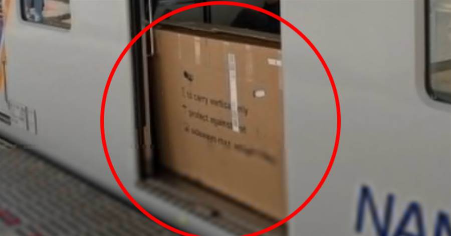 ドアのど真ん中に、デカい段ボールみたいな荷物がドン。