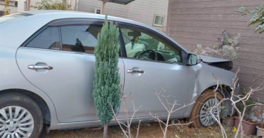 いきなりドンって音がして、外に出たら家の壁に車が突っ込んでた。