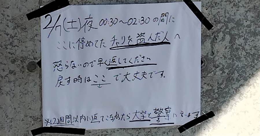 ※2週間以内に返ってこなければ大学と警察に言います」