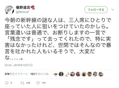 新幹線で非常に不可解な出来事に遭遇したという