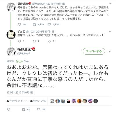指定席を取ってもいないのに「席を替わってほしい」とは