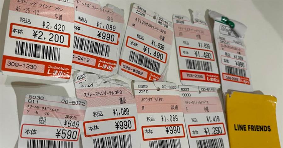 ぐしゃぐしゃになった、しまむらの値札。