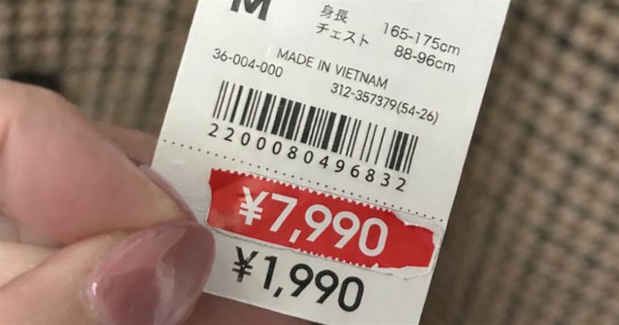 さて、私はそのタグを剥がしてみると、そこに書かれていた元の価格を見て、目を疑いました。なんと、1990円!? え、待って!7990円って、元々1990円だったんだ!?って、心の中で「これ、完全におかしいでしょ!」って叫びました。