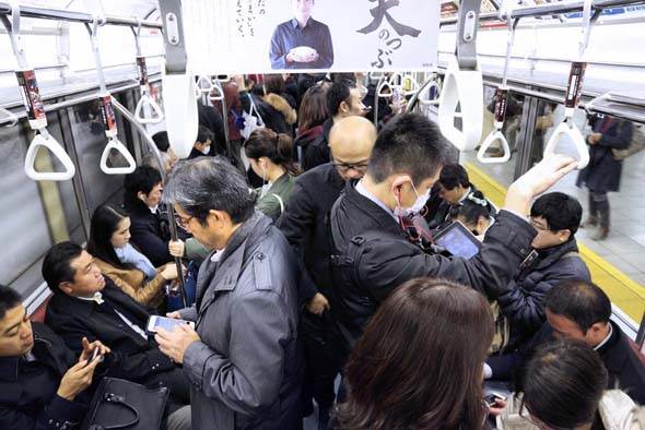 この混雑の中、旦那さんがドア付近に立ったら、人の流れに押されて、妊婦さんの隣には別の人が座るかもしれない。