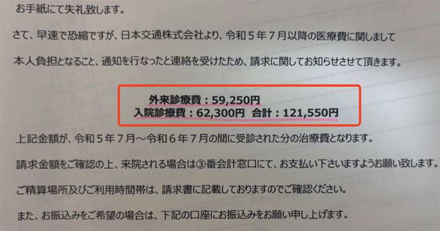 あの瞬間、私は自分の目を疑いました。病院から届いた請求書には、なんと121,550円という額が記載されていたのです。私がタクシー事故で負った怪我に関して、まさかの自費負担!? しかも、事前に何の説明もなく、突然この請求書が届いたことに、私は完全に目の前が真っ暗になった。